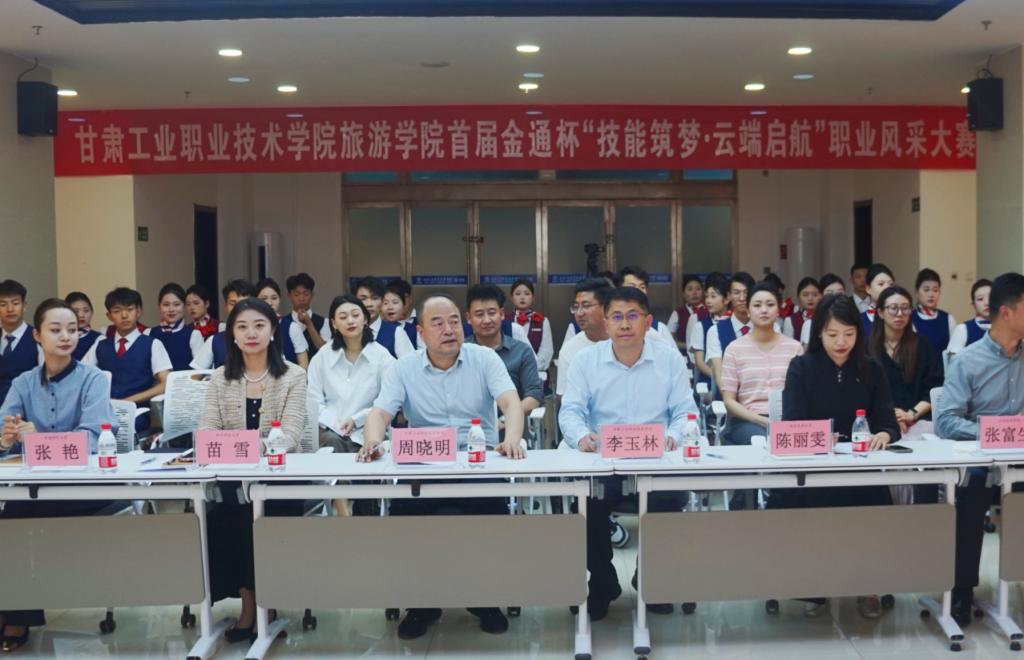 校黨委委員、副校長周曉明,旅游學(xué)院院長李玉林,北京廣慧金通教育集團(tuán)甘青區(qū)域總經(jīng)理苗雪等領(lǐng)導(dǎo)出席頒獎(jiǎng)典禮。大賽特邀西北師范大學(xué)、西北民族大學(xué)、青海師范大學(xué)、蘭州文理學(xué)院、蘭州城市學(xué)院、甘肅交通職業(yè)技術(shù)學(xué)院等高校的行業(yè)專家擔(dān)任評(píng)委,吸引百余名師生現(xiàn)場觀摩。