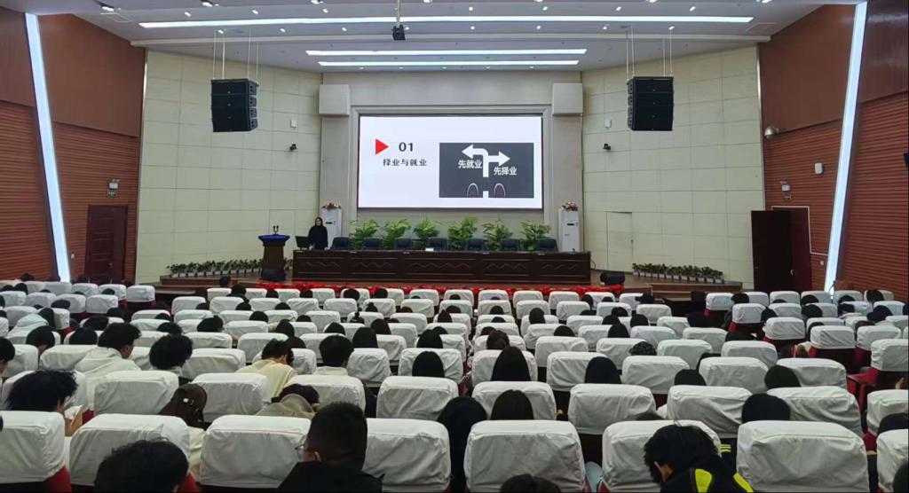 李玉林院長在致辭中指出,職業(yè)教育與產(chǎn)業(yè)需求緊密相連,職業(yè)生涯規(guī)劃應(yīng)貫穿于大學(xué)教育的全過程。“大學(xué)課堂,我們不僅要學(xué)習(xí)專業(yè)知識,更要關(guān)注自己的未來發(fā)展規(guī)劃。就業(yè)不僅僅是畢業(yè)時的事情,而是貫穿于整個大學(xué)學(xué)習(xí)過程中的重要課題,廣大學(xué)子要樹立先就業(yè)再擇業(yè)的職業(yè)觀念”。他鼓勵同學(xué)們:“要樹立正確的就業(yè)觀,既腳踏實地,又仰望星空,在實干中積累經(jīng)驗,在服務(wù)行業(yè)中實現(xiàn)自我價值。”