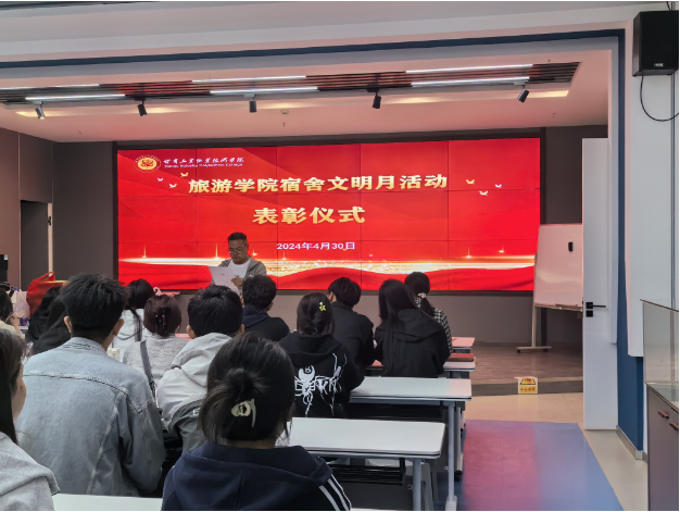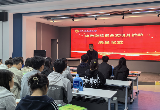 4月30日,旅游學(xué)院宿舍文明月活動(dòng)在AI實(shí)訓(xùn)室舉行了隆重的表彰儀式,學(xué)院副書記、全體輔導(dǎo)員、學(xué)生會(huì)生活權(quán)益部和全院學(xué)生宿舍長參與了本次活動(dòng)的評(píng)選。在本次為期一個(gè)月的活動(dòng)中,學(xué)院共有22間宿舍榮獲“優(yōu)秀宿舍”稱號(hào)。