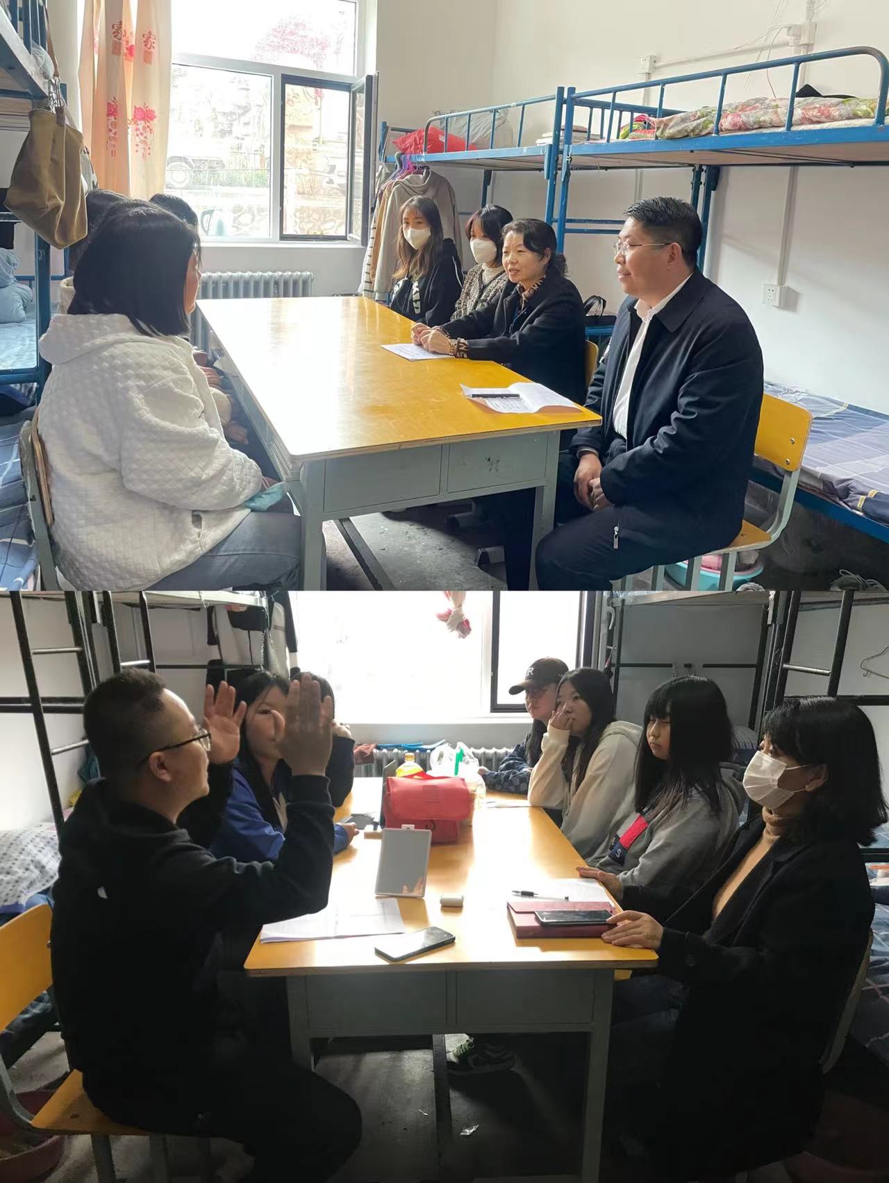 在走訪過程中,教師們對學(xué)生們表達了關(guān)心和問候,認真查看宿舍基礎(chǔ)設(shè)施、環(huán)境衛(wèi)生、安全情況,熱切關(guān)注同學(xué)們在生活中遇到的實際困難,并為學(xué)生們耐心講解了學(xué)校當(dāng)前的各項政策,叮囑大家嚴格遵守學(xué)校相關(guān)管理規(guī)定,不使用大功率電器,做好個人防護,養(yǎng)成科學(xué)飲食習(xí)慣。
