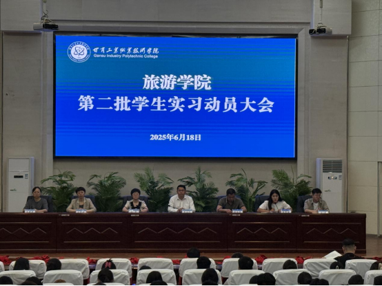 2025年6月18日,旅游學院在圖書館五樓報告廳召開2023級空中乘務(wù)、高速鐵路客運服務(wù)、酒店管理與數(shù)字化運營三個專業(yè)學生實習動員大會。旅游學院全體班子成員、三位專業(yè)主任、就業(yè)干事、輔導員及2023級實習學生參會。會議由院長李玉林教授主持。